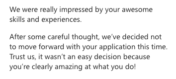 As you can see, getting an offer (or a rejection) often comes down to luck. You may get rejected at any stage for reasons completely unrelated to your performance. For instance: